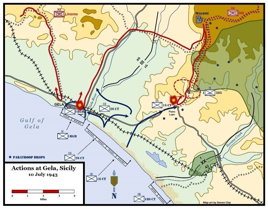 The coastal town of Gela where the Allies Invaded Italy on July 10, 1943 defeating the combined Italian-German forces